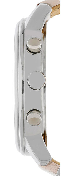 The case of the model is made in a classic silver color. The material is high-strength stainless steel. The dial is reliably protected by mineral glass. The display design will captivate you from the first minute with its delicate combination of silver canvas and pink indication. Three mini displays reflect additional features. The width of the model case is 38 mm. Water resistance is 30 m. Powder-pink leather strap is attached to the case very firmly. The buckle is steel, reliable. Belt holder with engraving of the brand name.