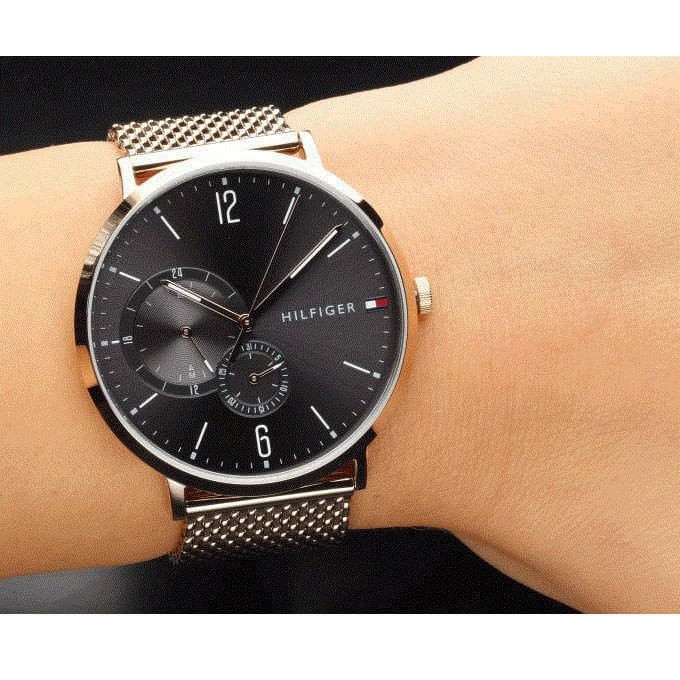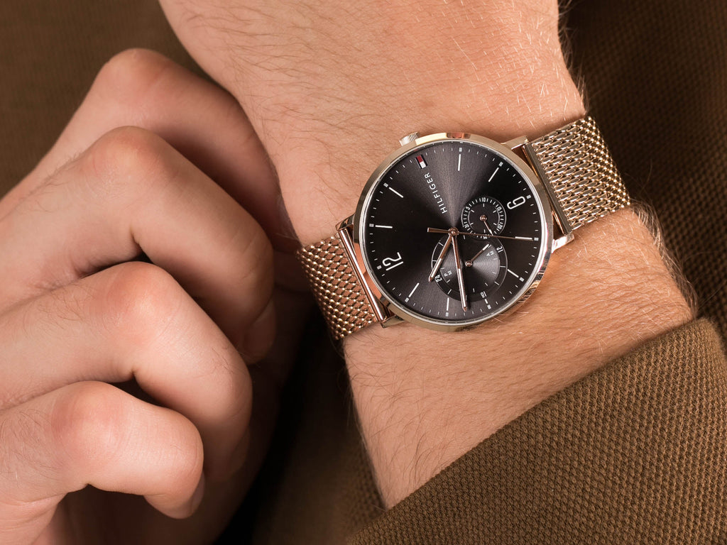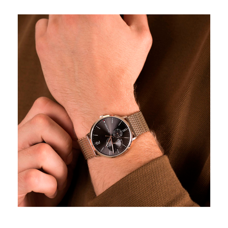 Tommy Hilfiger Brooklyn Grey Dial Gold Mesh Bracelet Watch for Men - 1791506