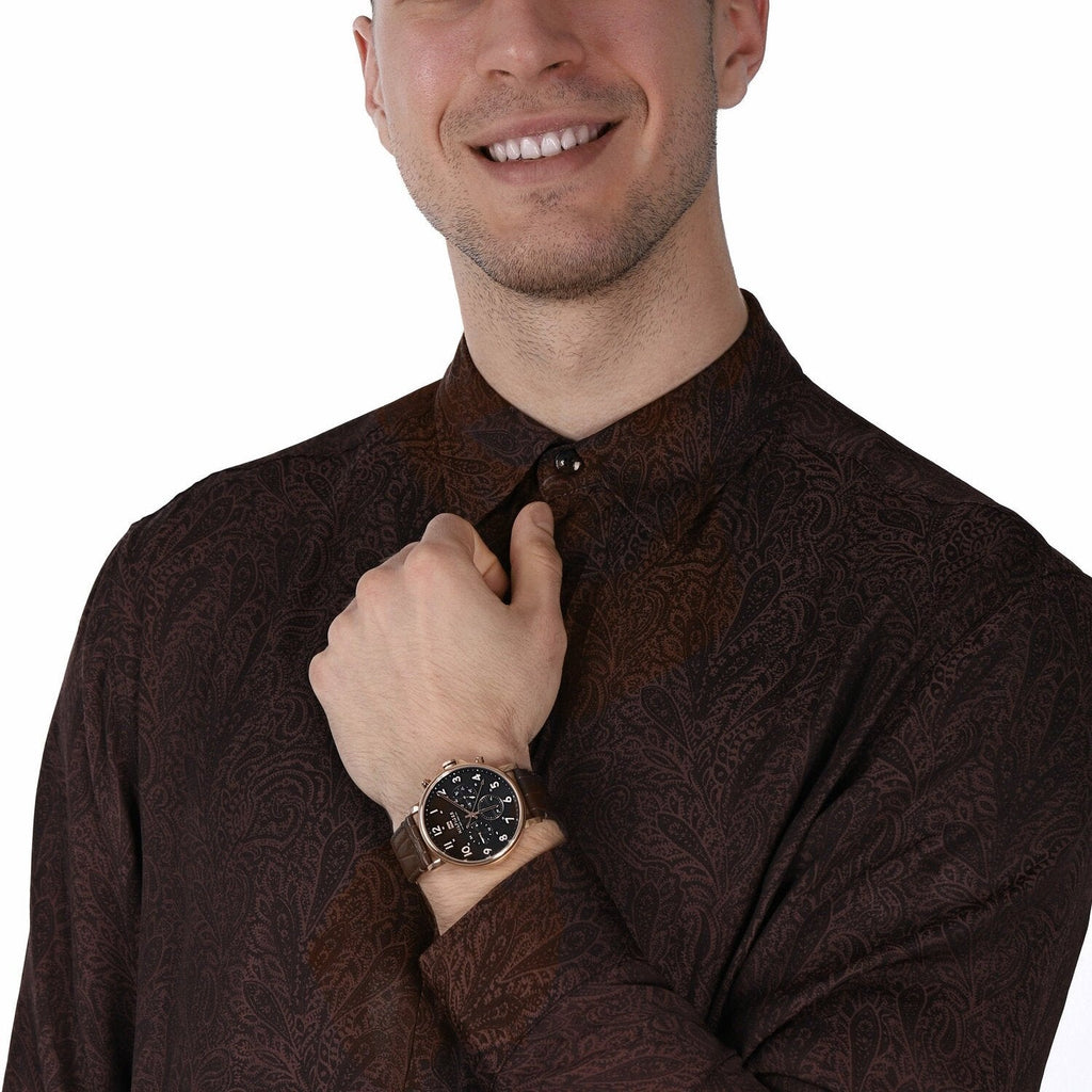 Tommy Hilfiger Daniel Black Dial Brown Leather Strap Watch for Men - 1710379