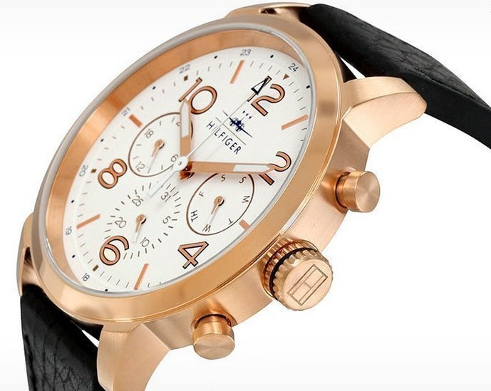 Tommy Hilfiger Jake Multifunction White Dial Black Leather Strap Watch for Men - 1791236