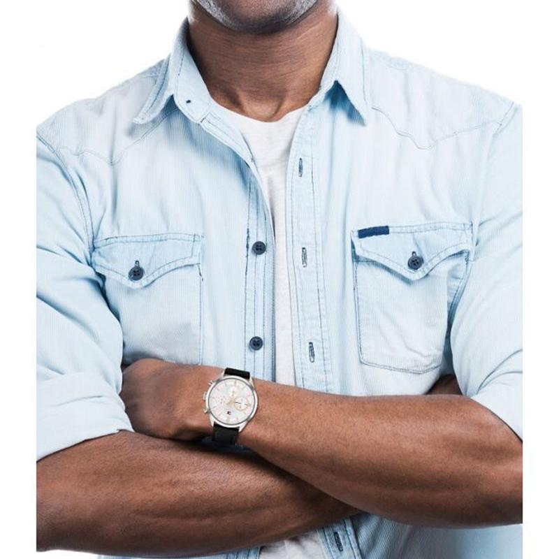 Tommy Hilfiger Chronograph Silver Dial Men's Watch 1791400 is a functional and special Gents watch. Material of the case is Stainless Steel and the Off white dial gives the watch that unique look.