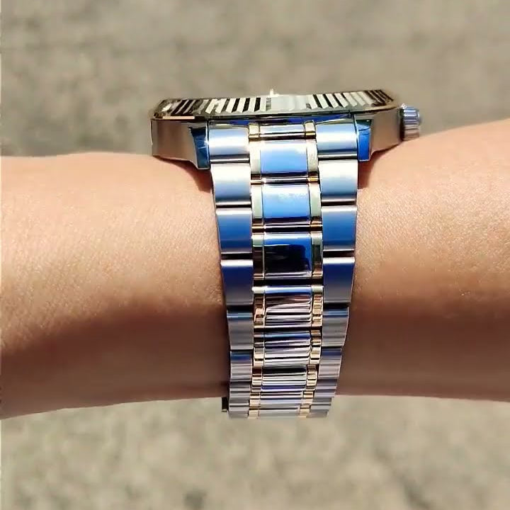 Experience luxury and style with our Tudor Style Automatic Black Dial Watch. This timepiece features a two tone steel strap and a sleek black dial, perfect for men who value both fashion and function. Stay on time and on trend with this sophisticated watch!