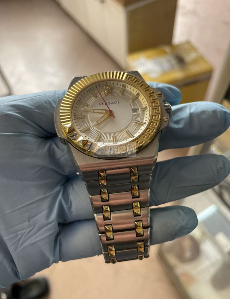 The Versace VEDY00519 Chain Reaction is an extremely chic and stylish watch. The silver-tone shades match perfectly with the gold-tone bezel. This is a piece of jewellery on any wrist! The silver-tone, sunray, dial shines and shines in the sun is always clearly visible thanks to the scratch-resistant sapphire crystal.