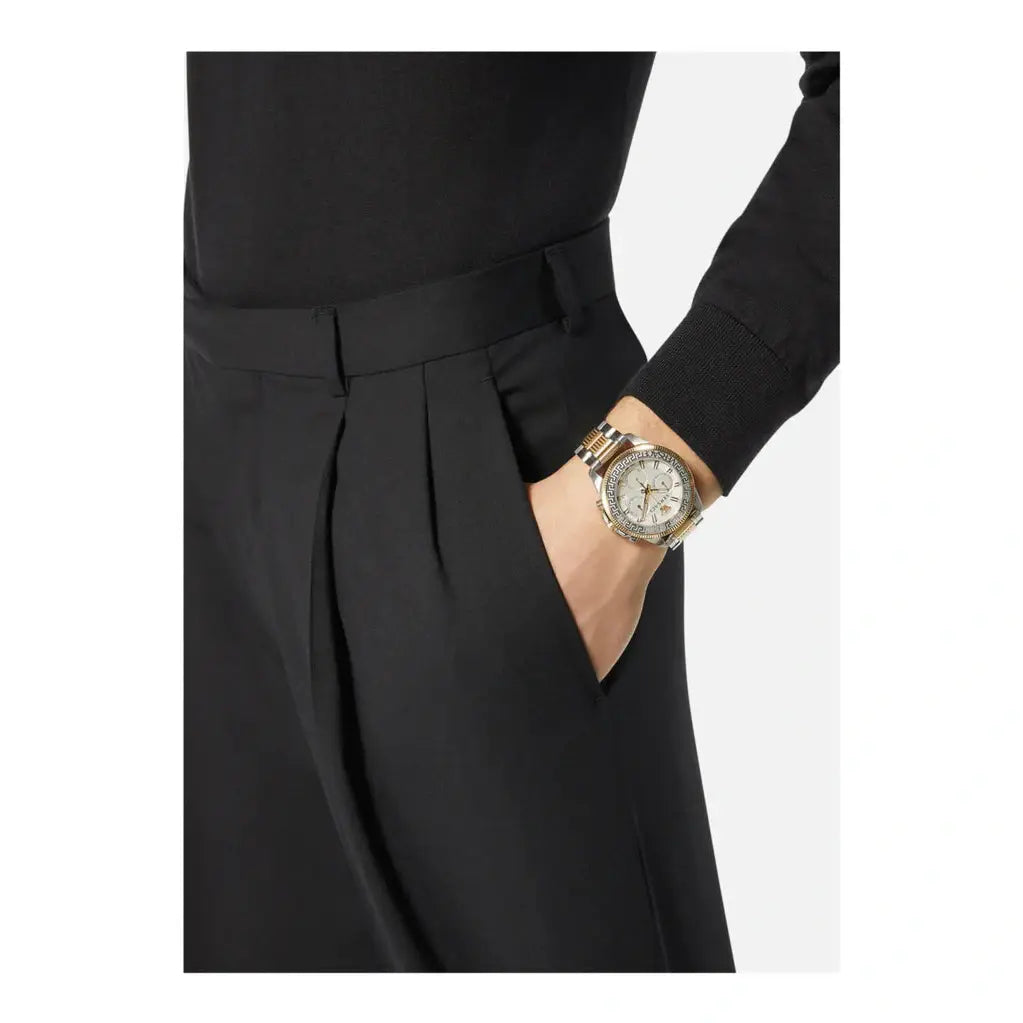 Versace Greca Action Chronograph Quartz Silver Dial Two Tone Steel Strap Watch for Men - VE3J00522