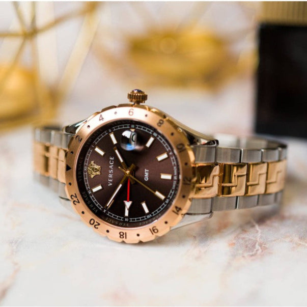 Versace Hellenyium GMT Blue Dial Two Tone Steel Strap Watch for Men - V11060017