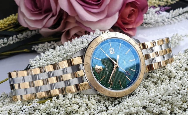 Versace Univers Quartz Green Dial Two Tone Steel Strap Watch for Men - VEBK00718
