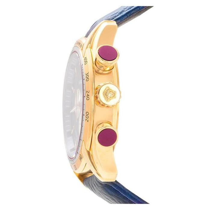 Versace V-Ray Blue Chronograph Blue Dial Blue Leather Strap Watch for Men - VDB030014